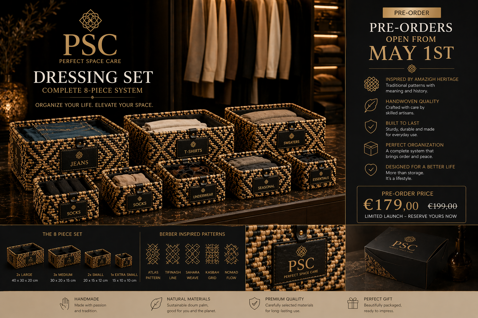 Een complete 8-delige set, ontworpen om je dressing volledig te structureren: